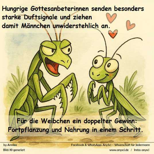 Partnersuche im Tierreich ein riskantes Geschäft. Bei der südafrikanischen Gottesanbeterin Miomantis caffra locken die Weibchen ihre Partner nicht nur mit Duftstoffen (Pheromonen) an, sie nutzen